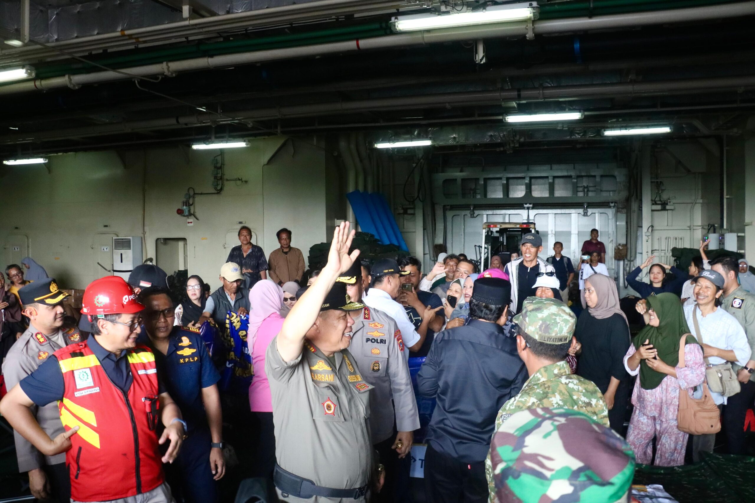 LKI Golkar – Gubernur Kepulauan Bangka Belitung (Babel) Hidayat Arsani memberangkatkan para peserta arus balik mudik gratis menggunakan kapal perang KRI Semarang 594 milik TNI Angkatan Laut menuju Jakarta sebagai bentuk kepedulian terhadap masyarakat pada perayaan Idulfitri 1447 H di Pelabuhan Tanjung Gudang, Belinyu, Kabupaten Bangka, Sabtu (28/3/2026).