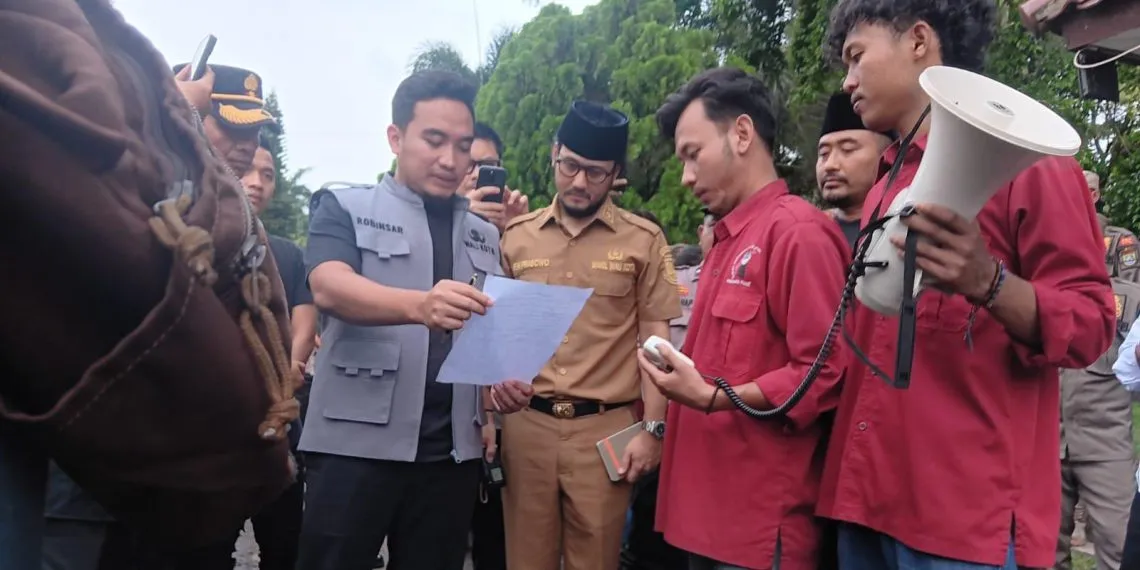 LKI Golkar – Wali Kota Cilegon Robinsar menemui langsung massa aksi Ikatan Mahasiswa Cilegon (IMC) yang menggelar refleksi satu tahun kepemimpinannya bersama Wakil Wali Kota Fajar Hadi Prabowo di depan Rumah Dinas Wali Kota Cilegon, Senin 23 Februari 2026.